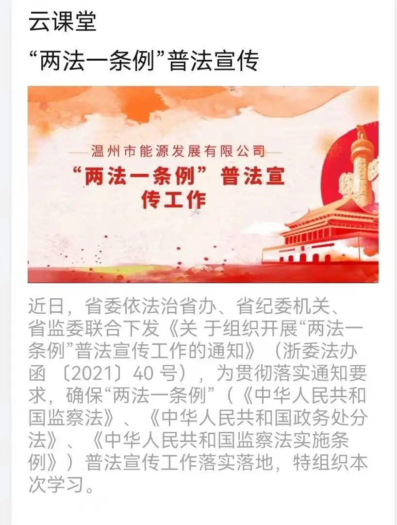 為深入學(xué)習(xí)貫徹習(xí)近平法治思想,貫徹落實(shí)習(xí)近平總書記關(guān)于全面從嚴(yán)治黨和監(jiān)察體制改革重要論述精神,根據(jù)省委依法治省辦、省紀(jì)委機(jī)關(guān)、省監(jiān)委聯(lián)合下發(fā)《關(guān)于組織開展“兩法一條例”普法宣傳工作的通知》的要求,能源公司近日開展了一系列線上線下的“兩法一條例”普法宣傳活動。
